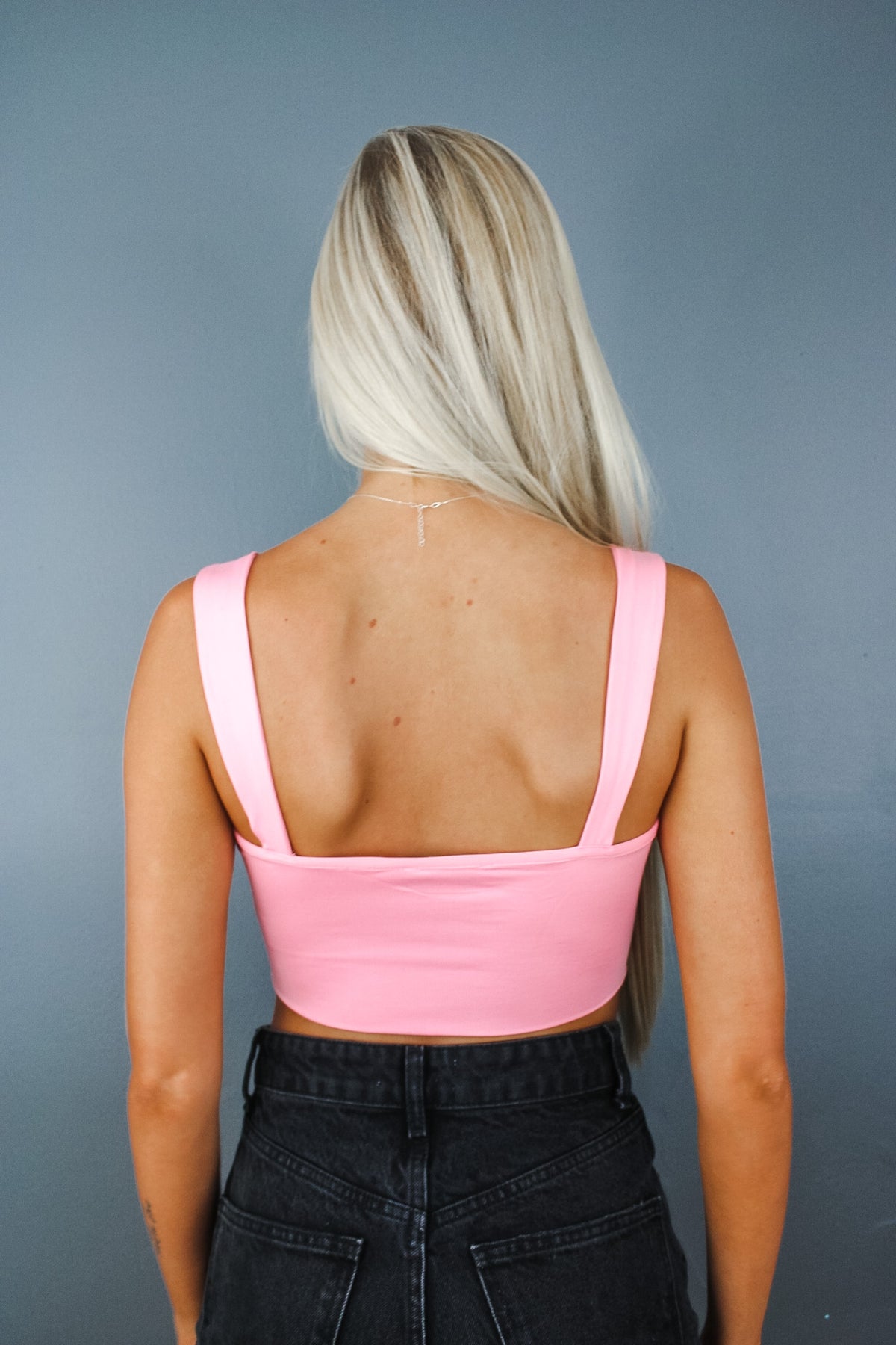 • Skylar is our baby pink corset top. This piece is made of a lightweight, slick material making it perfect for summertime. Skylar can also be used as a layering piece!